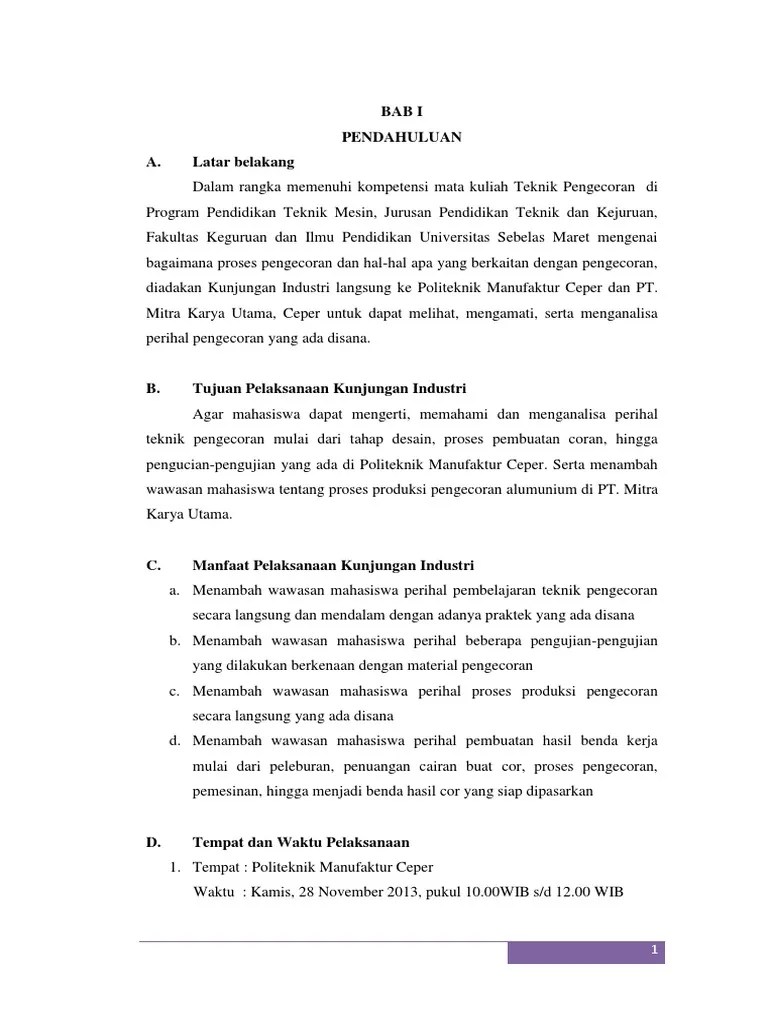 Proses inti pembuatan briket batubara diawali dengan sebuah alat pembriketan (gambar 2 kiri) dan dilanjutkan dengan alat pencetak briket (gambar . Kami dan semua pihak yang telah membantu dalam pembuatan tugas ini. Membuat stategi dalam pemenuhan target perusahaan dan cara. Contoh laporan kunjungan industri 12.06 no comments laporan kunjungan industri di universitas stikubank laporan ini diajukan untuk melengkapi kegiatan . Laporan kunjungan ini disusun untuk memenuhi nilai semester satu. Harapan kami semoga laporan yang kami buat ini dapat bermanfaat bagi kami dan . Sosro ini dengan tepat waktu. Sehingga penulis telah menyelesaikan laporan kunjungan industri ke pt. Jika kamu mengikuti kegiatan kedinasan, laporan yang disusun akan berbeda dengan laporan untuk . Salah satu tujuan penulis dalam menulis . Sampul luar berisi judul (laporan kunjungan industri, judul yang diambil), lambang universitas muhammadiyah. Pengertian, contoh dan format laporan kunjungan industri mahasiswa, smk jurusan tkj, pemasaran, otomotif, akuntansi. Menyelesaikan laporan kuliah kerja magang (kkm) yang kami buat ini.